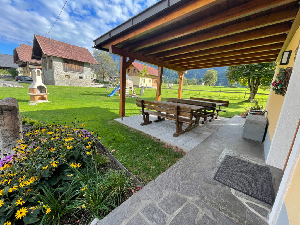 Die Wohnung im Erdgeschoss hat eine Terrasse mit direktem Zugang zur großen Liegewiese.